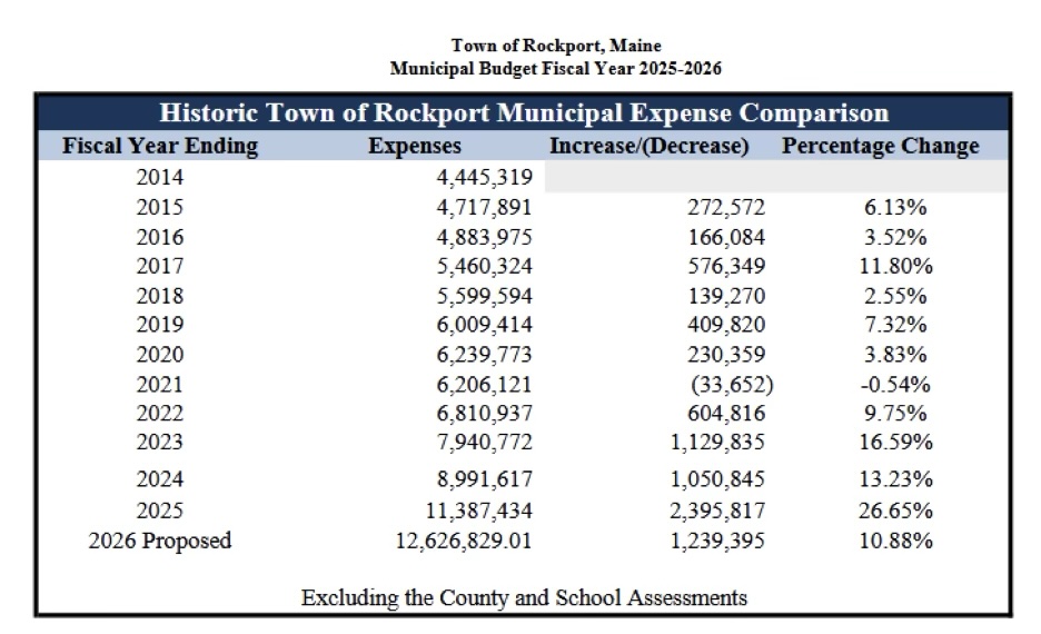 That was then followed by yet another spending increase of $2.4 million for FY25, and yet one more massive spending increase in FY26. Altogether, from FY21 to FY26, Rockport’s municipal spending doubled, from $6.2 million to $12.6 million.