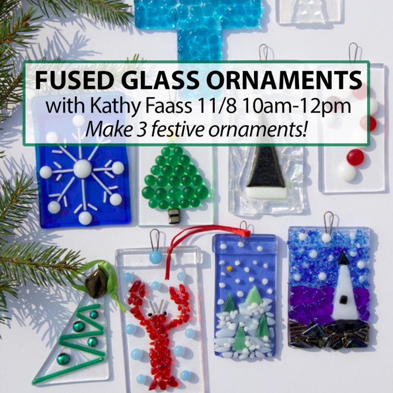 Join us on Saturday November 8th from 10am-12pm for a fused glass ornament workshop with Kathy Faass!