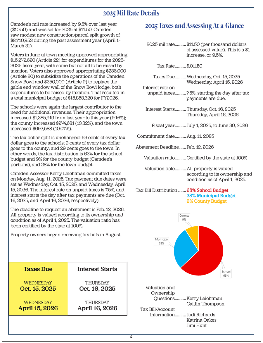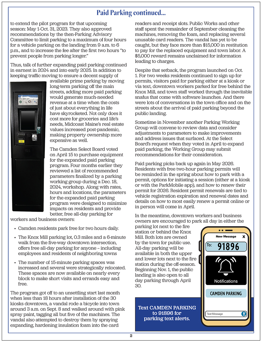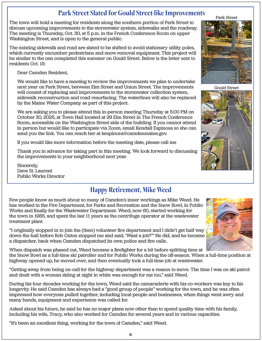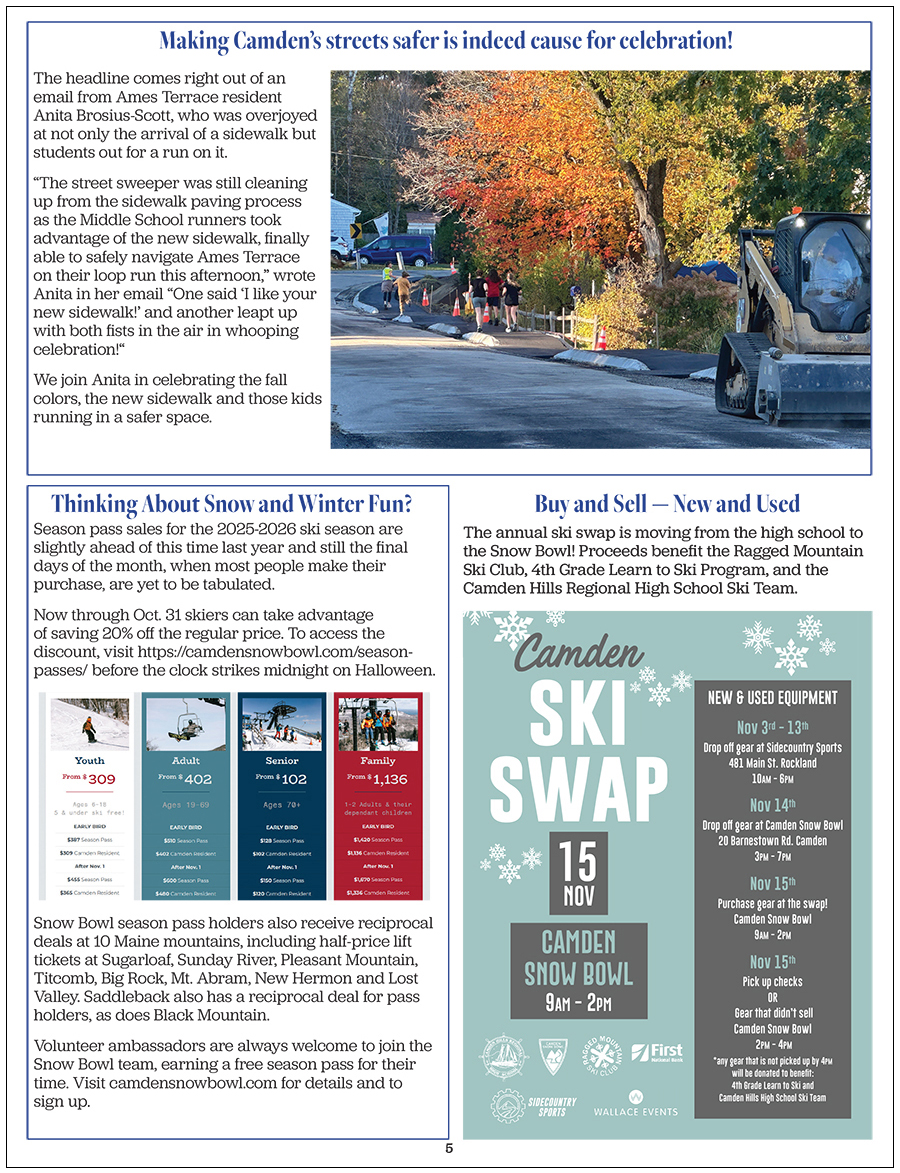 The August-September-October 2025 issue of the Town of Camden Newsletter has been published. Click HERE to read it. It is also poseted on the Town's website at www.camdenmaine.gov at News and Announcements and on the Communications page.