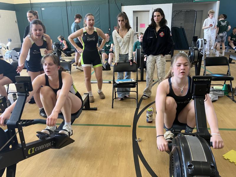 The Megunticook Loonies made their presence known at their first competition of the season on April 12, racing indoors at Waynflete’s gym in Portland. The event featured 2,000-meter erg races for both boys’ and girls’ teams, along with a fast-paced mixed relay. Competing against Maine Coast Rowing Association and Waynflete, the Loonies faced tough competition and competed like champs. The camaraderie and sportsmanship were outstanding all around!
