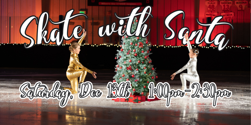 Join us for a special holiday themed public skate on Saturday, December 13th! From 1:00-2:30pm*, join Santa Claus on the ice during our Skate with Santa event.