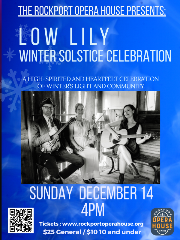 The Rockport Opera House is excited to be part of the Winter Solstice 2025 tour with Low Lily.  We will host a matinee concert on December 14th that will be a wonderful balm for these dark nights.