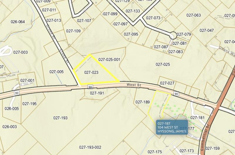 The lot under consideration for a two-building, 24-unit housing development in Rockport. (Image courtesy Town of Rockport tax map)