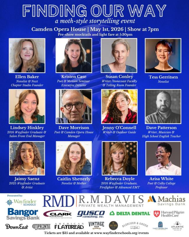 Friday, May 01, 2026 - 07:00 pmThe 6th annual Finding Our Way, a live storytelling event to benefit Wayfinder Schools, will be held Friday, May 1, at 7 p.m., at the Camden Opera House.