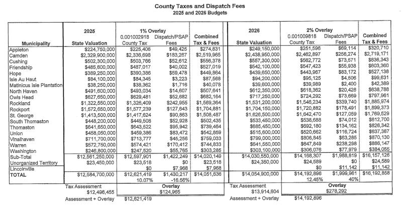 Wednesday, March 04, 2026 - 04:00 pmROCKLAND — When the 2026 budget to fund Knox County government services and infrastructure (airport, courthouse, jail, 911 dispatch and Sheriff's Office) was introduced last fall, it carried a 22 percent increase over the 2025 budget, and the 18 municipalities took note — the budget is funded by property owners throughout Knox County.