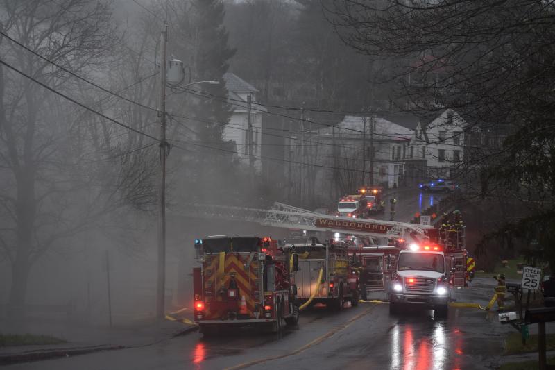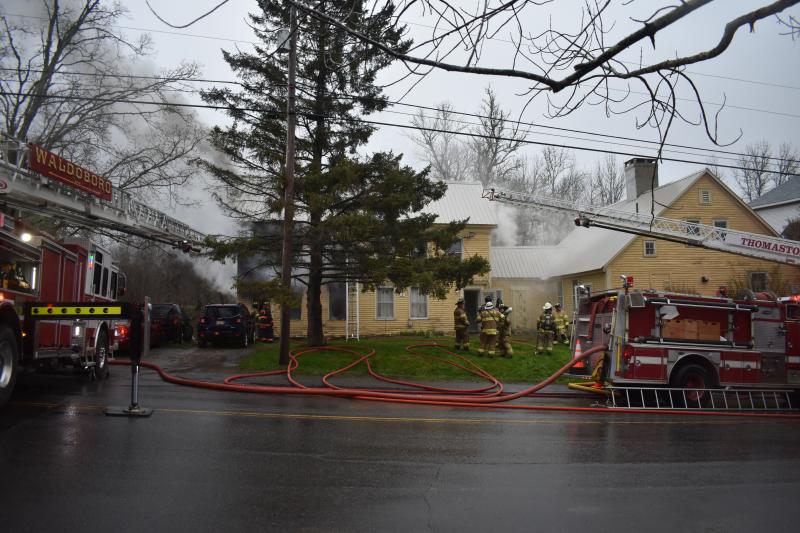 At least one occupant was injured while trying to evacuate the structure fire, which was reported to Knox Regional Communications Center just after 6 a.m., Thursday, April 30, 2026. At least one caller to 911 reported that a woman had jumped from a second story level in order to escape. Warren Ambulance transported one person to MaineHealth Pen Bay Hospital. Ultimately, Warren EMS requested two more ambulances to the scene; Waldoboro brought two ambulances and Union Ambulance staged at the scene as an on-site resource for firefighters until Warren Ambulance was able to return.