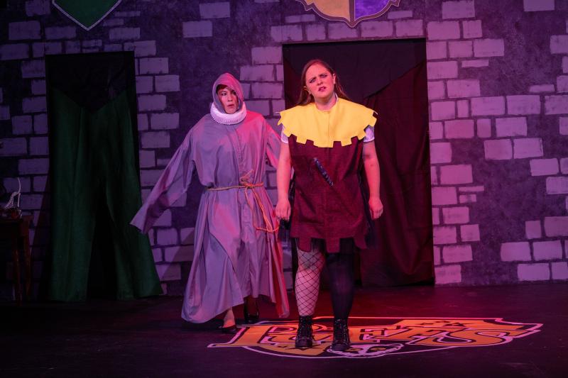 The Puffs, and other denizens of the school, are played by a capable ensemble cast of players—most familiar, but some new to the Belfast Maskers stage: Maci Burgess, Cassidy Small, Olivia West, Katey Stearns, Ember Hoffman, Willa James, Angela Domenichelli, Jana Hoffman, Emily LeBlanc McConnell, Linnea Harrold, Elaine McKee, Patricia Saucier.