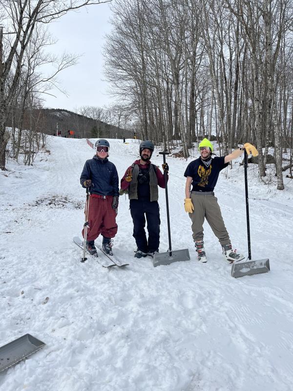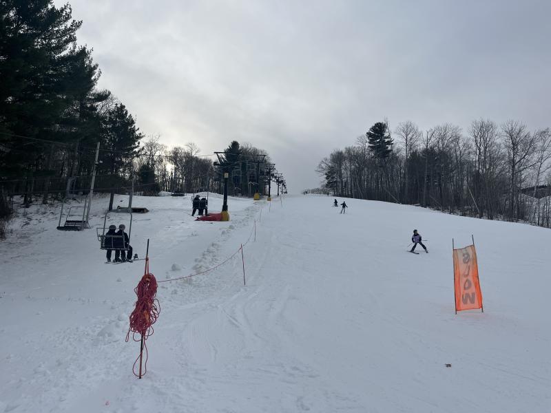 "The 2025-2026 Season has begun!" said Snow Bowl Assistant General Manager Grace McMullan, halfway through Saturday afternoon, as the sun filtered through snow clouds that hovered over Ragged Mountain. "We had a great turn-out for our soft opening. The double chair and magic carpet were spinning and there was great snow on Foxy, Coaster, and Slipway. The Ski School instructors were on snow, training for the season. The Terrain Park staff was hard at work shaping features for the Wave Pool Park. Snow-makers were up the mountain making snow so we can get the rest of the mountain open for holiday vacation."