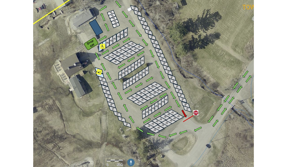 The new parking plan at the Camden Snow Bowl asks drivers to loop around the parking lot in the opposite direction from what was the old flow pattern. Signs will be erected to help drivers get used to the new way, which is designed to increase usable parking space. (Image courtesy Camden Snow Bowl)