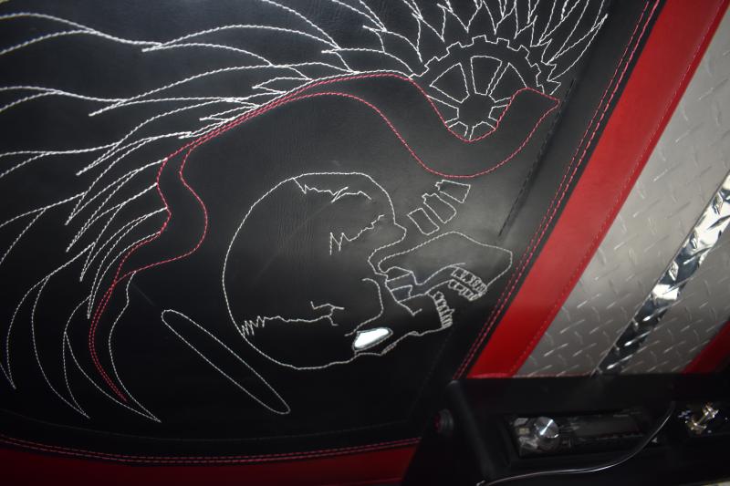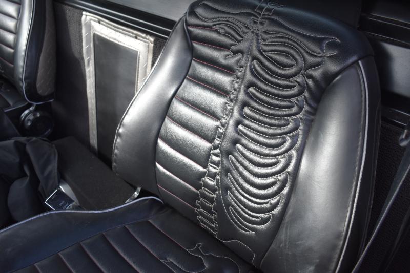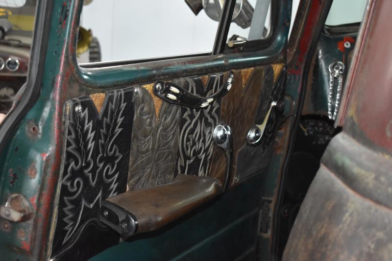 In the cab, a gear shaft with three or four different phases allows up to 18 shift changes. Material from cowboy boots fabricates the seats and doors.