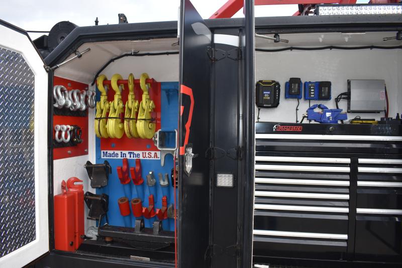 Once acquired, Oakes, his right-hand-man Woody and the one he credits for helping design the product, along with the rest of the crew, lengthened the frames of the truck’s undercarriage in both directions and added side poles. The result is the ability to pull 20,000 pounds in one direction, 40,000 pounds in another direction, and lift 40 tons.