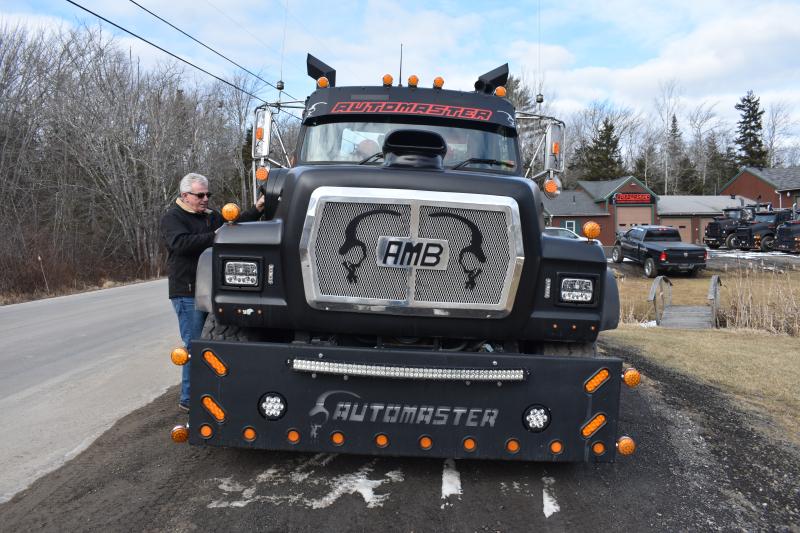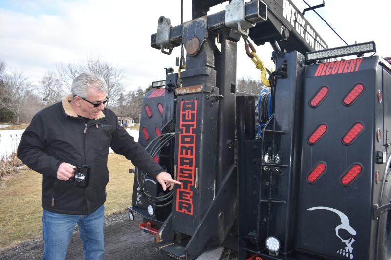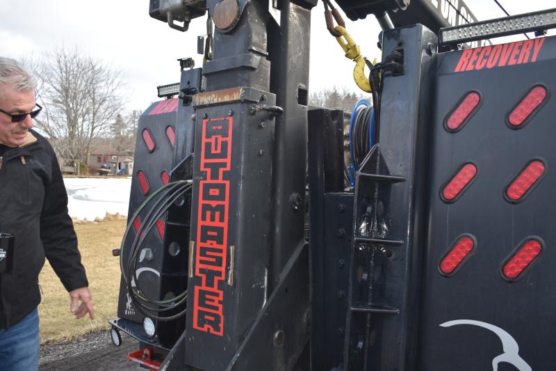 All I see is a 40-foot long wrecker the size of a tractor trailer truck, a mammoth beast in and of itself without towing another rig behind.