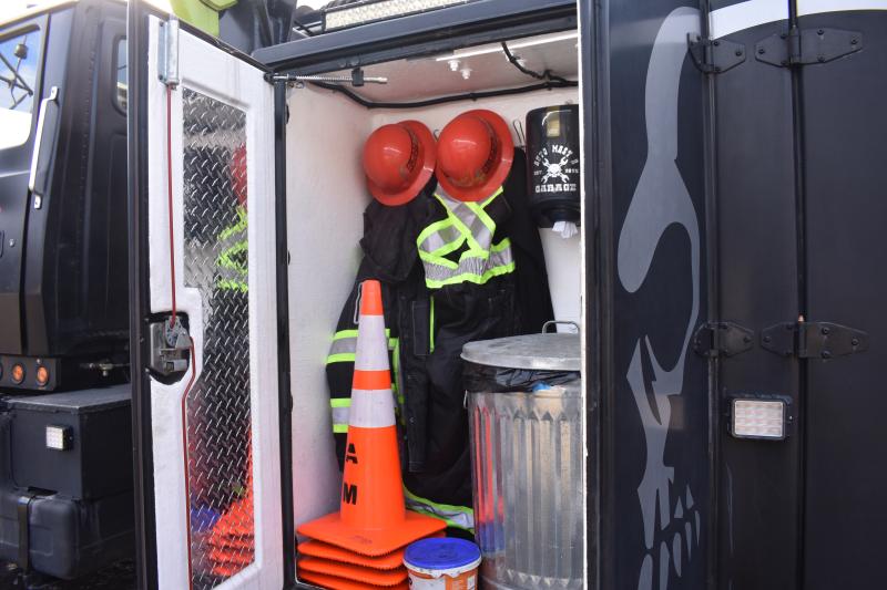 The original truck that became the basis for Oakes’ rig was a vacuum cleaner truck that once cleaned the storm drains of Bangor. Storm drain cleaning does not take place in winter or in inclement weather, leaving many of its parts “immaculate,” according to Oakes.