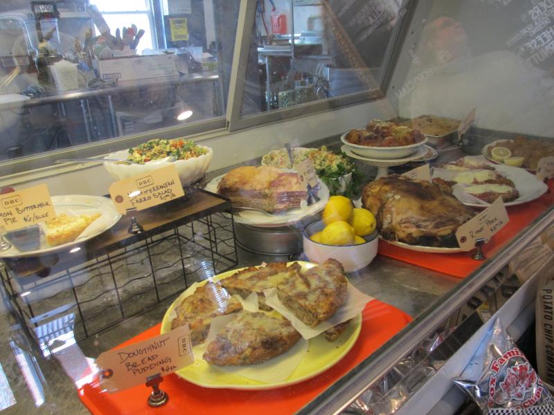 The take-out cases carry dinner items such as lasagna, and their freezer contains more take-home dinners, such as a pasta dish that can be reheated. They also have a beer and wine license, so anyone who wants a beer with his or her lunch, can enjoy it or buy a bottle to take home.