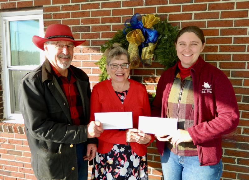 This week, Principal Linda Pease presented a $100 check to food pantry representatives Wax Brackett, of Friendship, and Hannah Harm, of Waldoboro.