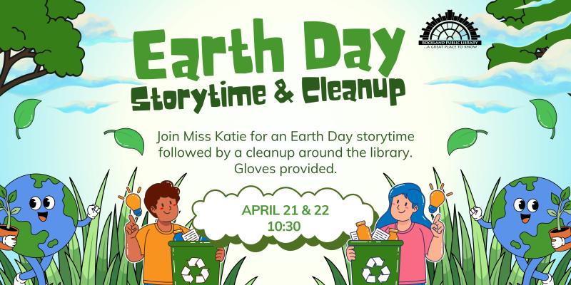 Join Miss Katie for an Earth Day storytime with three stories, an Earth Day song, and three dances, Tuesday, April 21 and Wednesday, April 22, from 10:30 - 11:30 a.m., at the Rockland Public Library.