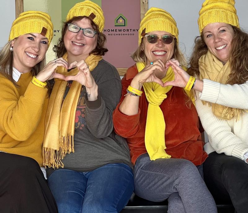 Celebrating how their Midcoast-based nonprofits are collaborating to bring more love to the area's most vulnerable residents are from left to right Molly Feeney, Executive Director of Homeworthy, Mary Kamradt, Operations Manager of Finding Our Voices, Patrisha McLean, CEO+Founder of Finding Our Voices, and Shannon Shimer, Assistant Director of Social Services at Homeworthy. Photo supplied by Finding Our Voices.With women survivors of domestic violence making up half of the homeless people in midcoast Maine, Homeworthy and Finding Our Voices are partnering to bring more help, and faster, to our area's most vulnerable families.