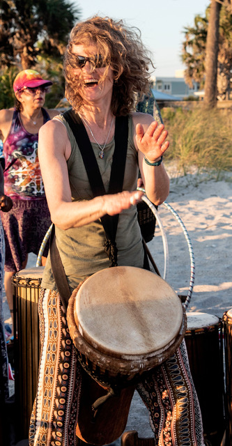 Annegret Baier grew up in Germany and received her classical music training in violin, voice and piano from the University of Music in Stuttgart. She has studied with master drummers from Guinea, Ghana, Cuba and Brazil. She has done several residencies with her primary teacher, Famoudou Konate, in Conakry, Guinea. She performs throughout Maine and New England, solo and with her bands Inanna, Sisters in Rhythm, and The Strangely Possibles.
