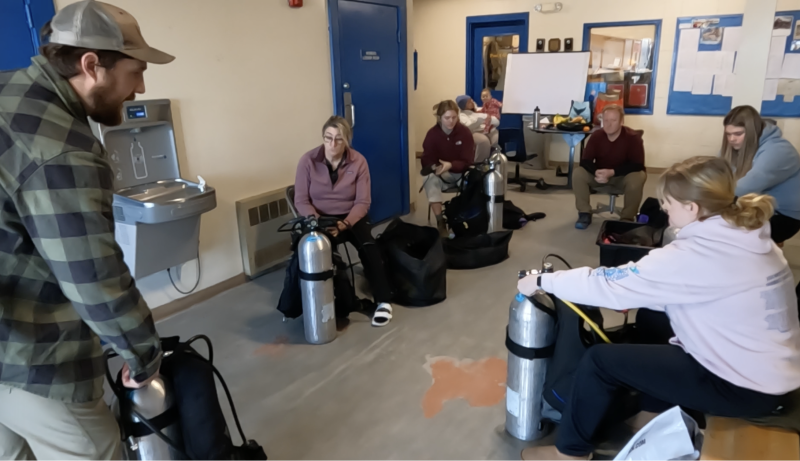 Part of the mission of the Belfast Marine Institute at Belfast Area High School is to offer opportunities for students to earn quality credentials and certifications in marine-related activities. BMI just wrapped up its classroom and pool portion of yet another Basic Open Water Scuba Certification dive course.