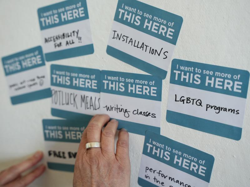 The exhibition features a range of participatory installations, including doodle walls, a wall inspired by Candy Chang’s Before I Die project, and a “sticky” communal prompt inviting visitors to share their hopes for the future. A collaboration station will provide materials for visitors to create artwork on the spot and immediately add it to the gallery walls, allowing the exhibition to grow organically over time.