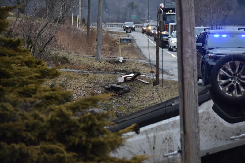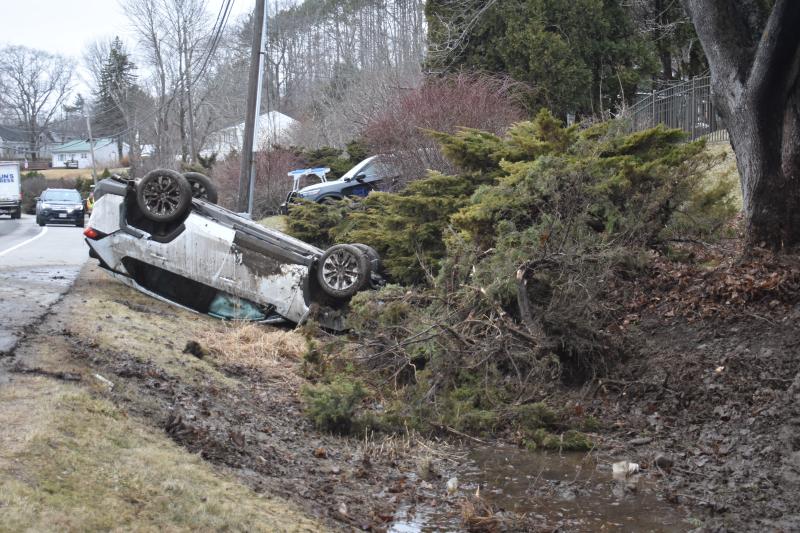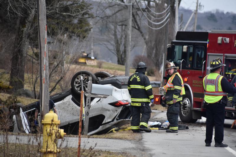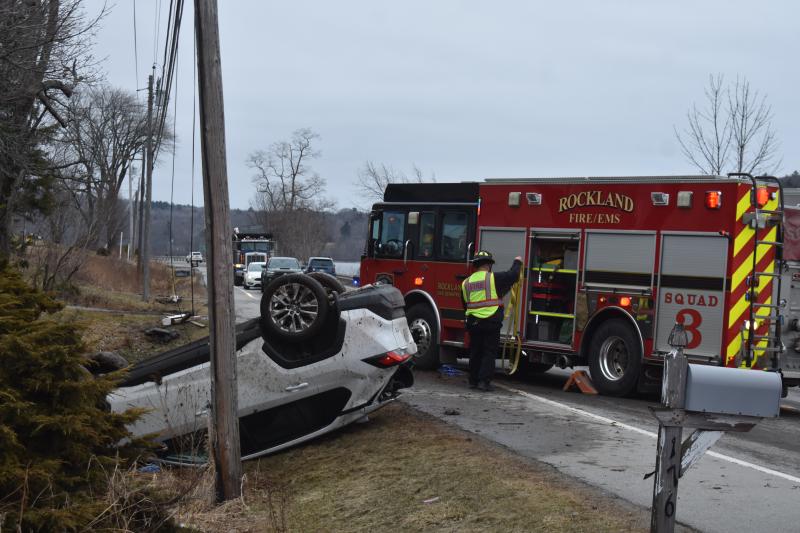 Scene indications, according to Rockland Police Chief Tim Carroll, were that the driver of the eastbound vehicle became distracted. The vehicle then went off the pavement, and launched over a driveway before landing in a ditch and overturning.