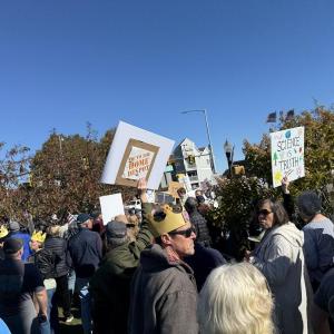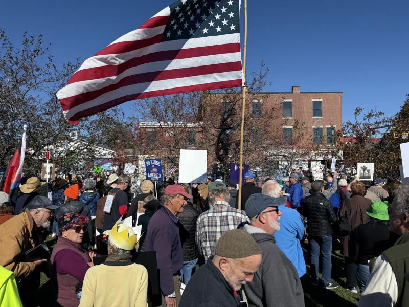 ROCKLAND — A large crowd carrying signs gathered just before noon at Chapman Park in downtown Rockland to demonstrate for democracy. The 'No Kings' event in Rockland was held in concert by at least 2,600 more such demonstrations in the U.S., parts of Europe, the Caribbean, Micronesia, Australia and Central America.