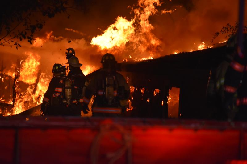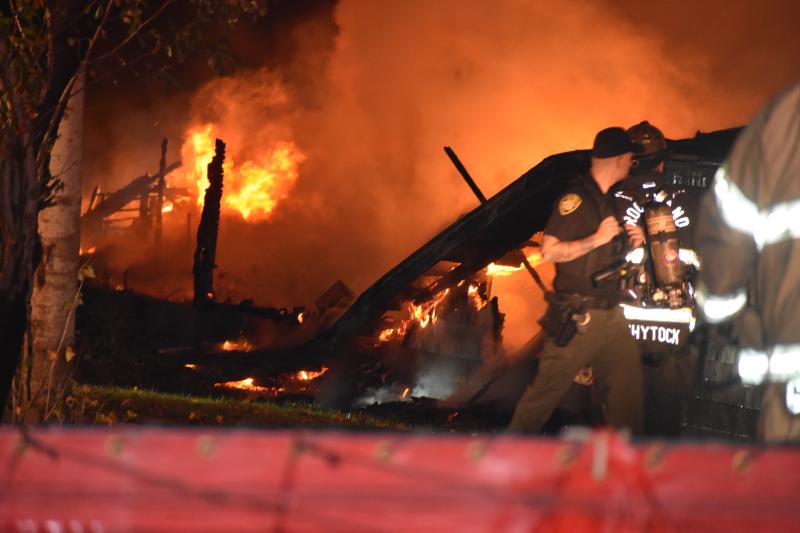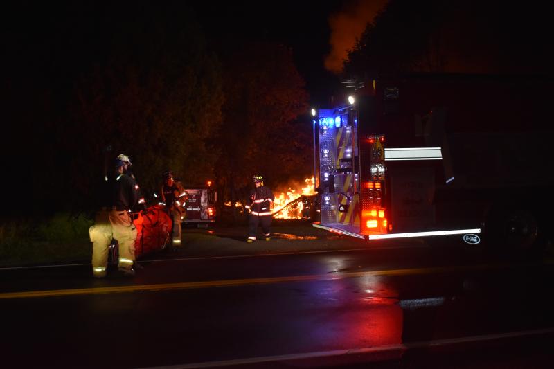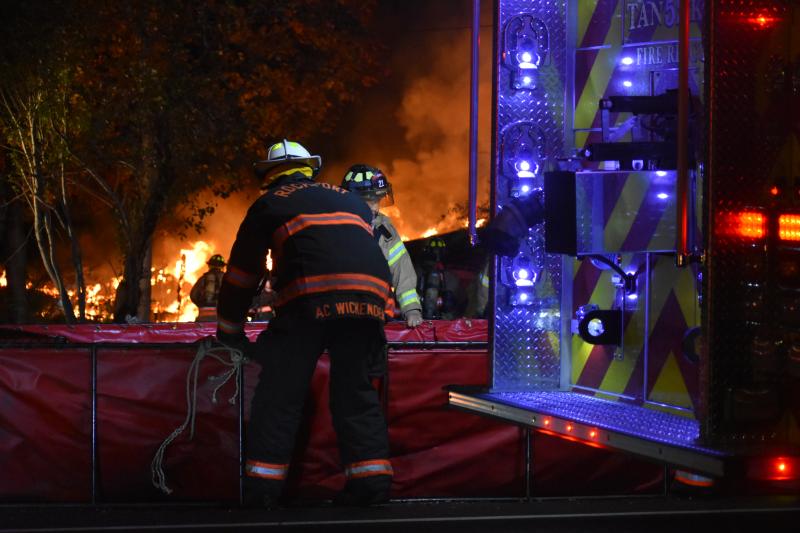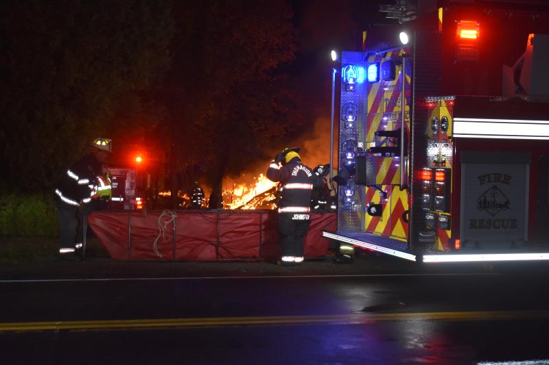 OWLS HEAD (10/23/2025 at 8:35 a.m.) — The Fire Marshal's Office is investigating the cause of a structure fire in an approximate 30' X 150' workshop that had once been a barn at 160 North Shore Drive, in Owls Head. Other than one vehicle in the structure, firefighters at the scene were unable to identify the nature of the workshop due to the building and all items being completely destroyed. Another vehicle on the property was not inside the barn.