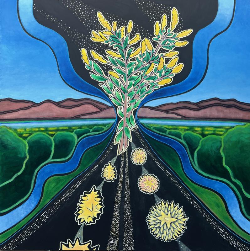 Sabino’s paintings are love letters to nature. The "Path Forward" series focuses on an uplifting and optimistic state of perception that can occur while spending time with healing plants. Paintings in this show include “Elderberry,” a wonderful plant of longevity, “Goldenrod Pollen,” imparting optimism and protection, and “Ironweed,” a tough plant of perseverance and resilience.