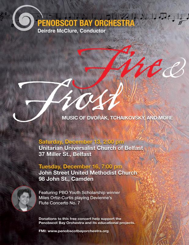 Fire & Frost, a seasonal, family-friendly winter concert by the Penobscot Bay Orchestra, will feature Penobscot Bay Orchestra Young Musician Scholarship recipient Miles Ortiz-Curtis as flute soloist.