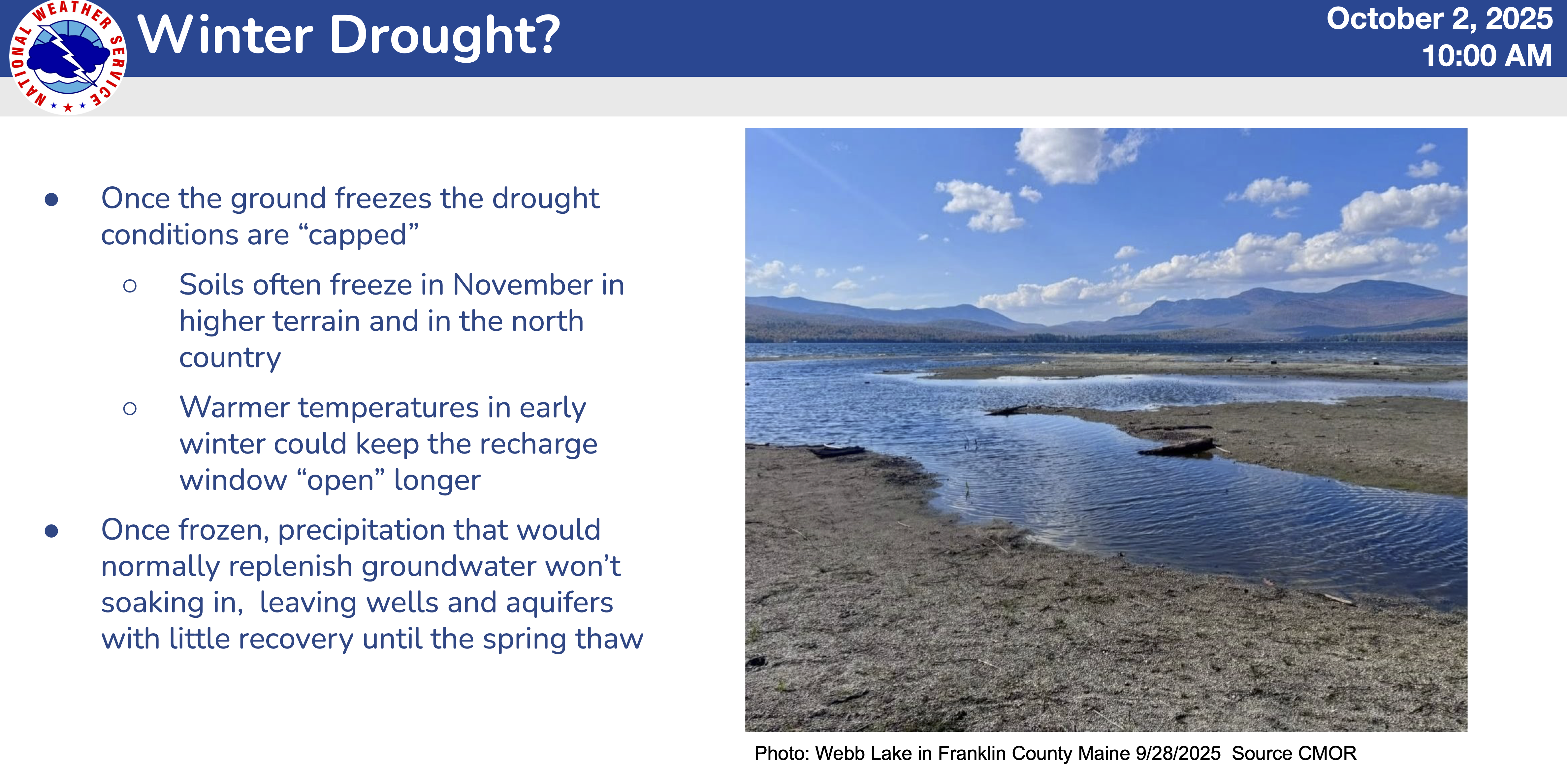 Steady, light-rain events with high absorption rates, the NWS said, in an update to the Maine Drought Task Force, which convened Oct. 2.