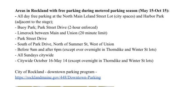 ROCKLAND — A new parking program in Downtown Rockland will take effect May 15, 2026, stretching through the tourist season to October 15, 2026.