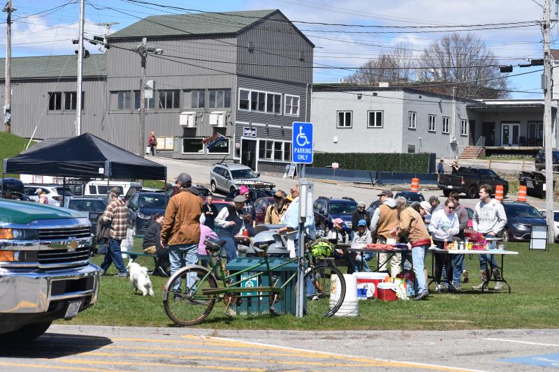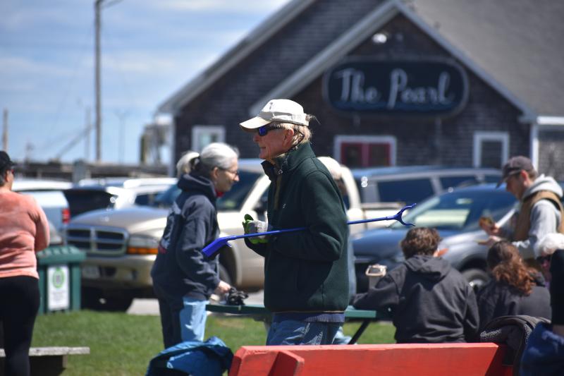 More than 100 volunteers dispersed to six designated cleanup sites in Rockland on Saturday morning, April 25, 2026. A couple hours later, they reunited under blue skies and warm 45-50 degree temps at Harbor Park, cheerful, smiling, social, and ready for a free barbecue; a raffle prize for a Lemon Bar gift card didn’t hurt the mood either. (The last two years were miserable rainy days, yet still drew 80-90 volunteers.)