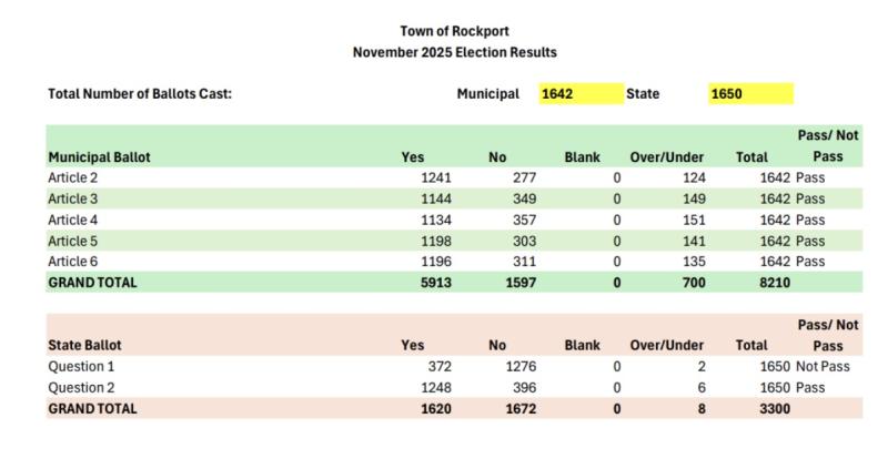 Rockport approves land use amendments, says no to statewide Question 1, yes to Question 2