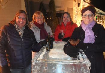 From Cape Elizabeth Dora Hurt, Stella Crawford, Maddie McCarley and Sandy Shapiro-Hurt enjoy the ice carvings.