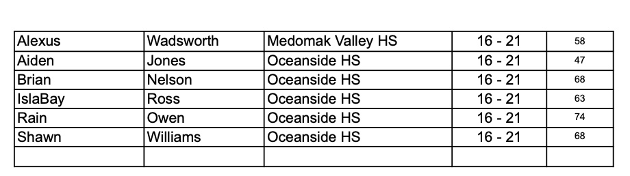 (Photo courtesy Jennifer Daigle, Medomak Valley High School) On Monday, November 17, the Special Olympics Knox/Waldo Bowling Tournament took place at Oakland Park Lanes, in Rockport. Athletes are grouped into divisions by age group and score, with student and adult results. Place ribbons were awarded based on their division.