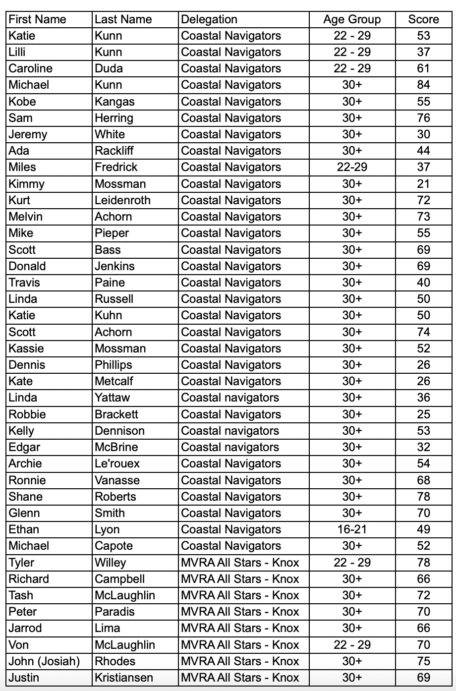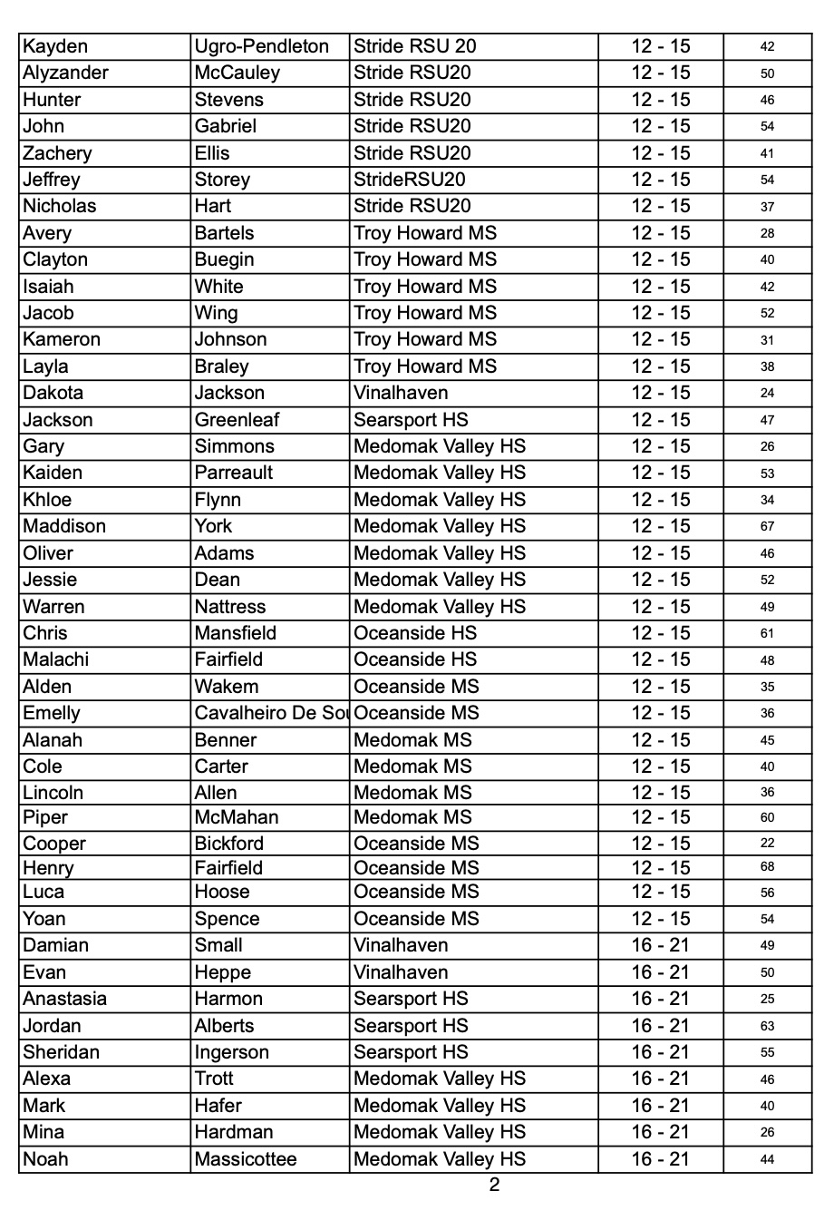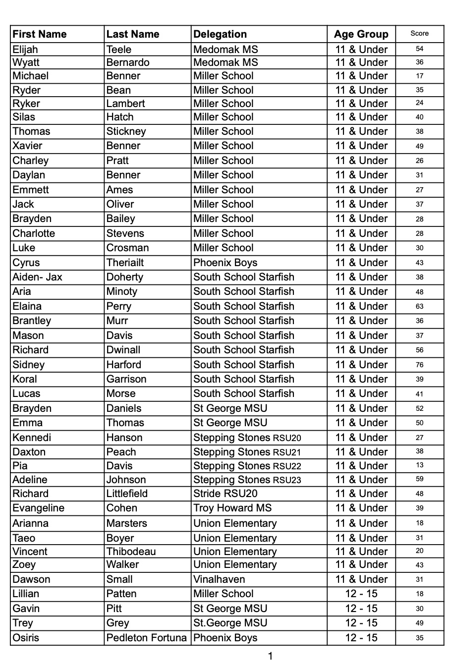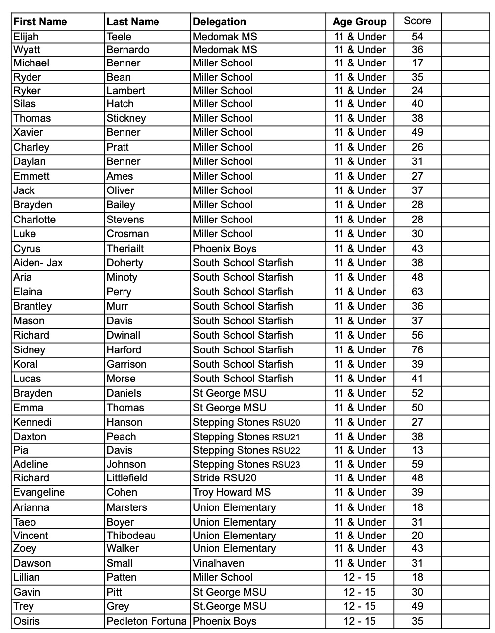 The Nov. 17 Rockport event drew hundreds of adults and children. Here are their results: