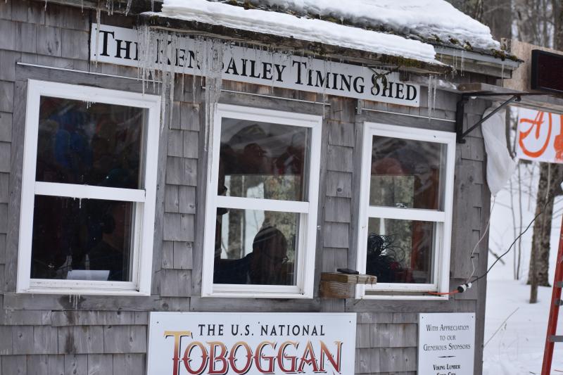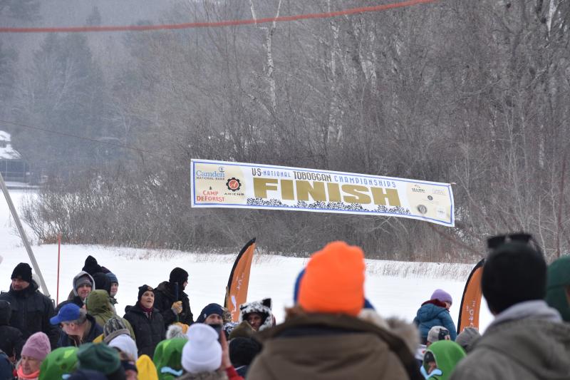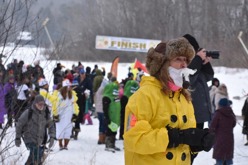 A participant in costume reacts during a ride down the toboggan chute, Feb. 7, 2026 at the Camden Snowbowl. (Photo by Sarah Thompson)