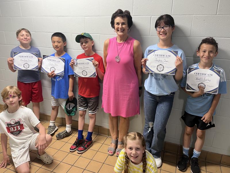 Math Olympiads. Front: Rhys Hatch, Greta Stinson. Back: Christian Couch, Justin Chen, Caleb Stinson, ACES teacher Rose Richter, Sophia Chen, Wyatt Earley. (Photo courtesy Thomaston Grammar School)