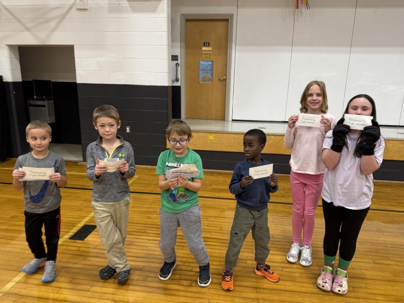 Throughout the month, students were awarded daily tickets for being responsible. These tickets were put into a raffle and six lucky winners were drawn at the assembly. Winners received their choice of a prize, including gift cards donated by local businesses or lunch or game with Mrs. Riley. This month’s winners were James McRae, Colton Webber, Ezra Reed, Imrane Hamza Issifi, Autumn Morin, and Opal Wellman.
