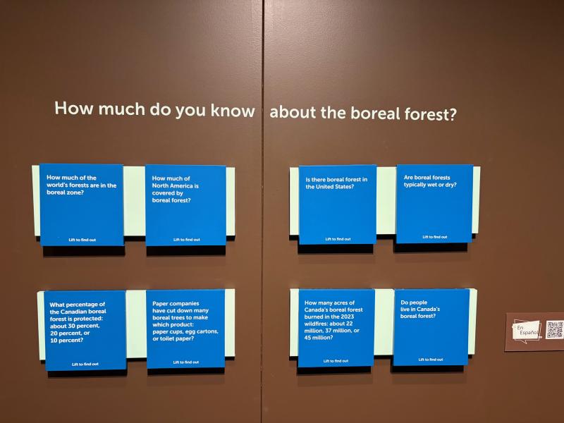 We were in Massachusetts for events in connection with an exhibit at the Peabody-Essex Museum in Salem. The exhibit is also focused on places to our north—in this case, the Boreal Forest biome. The exhibit is called Knowing Nature: Stories of the Boreal Forest, and it will be at the museum until September 2026. It’s full of big, beautiful photos and other imagery, interactive games for kids (and kids-at-heart), and the amazing sounds of birds from the Boreal Forest softly permeate the soundscape, making it feel like a calming oasis. The exhibit is organized by season, and this version (it is a Smithsonian Traveling exhibit, making its way around the country) has a gorgeous moss wall, a historic canoe model, and an art installation by a local Indigenous artist.