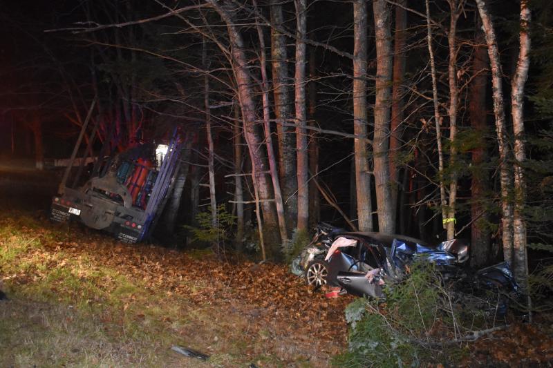 The crash, involving a logging truck and two private vehicles, occured at approximately 4:05 p.m., just outside the Union Transfer Station, 3519 Heald Highway (Route 17).