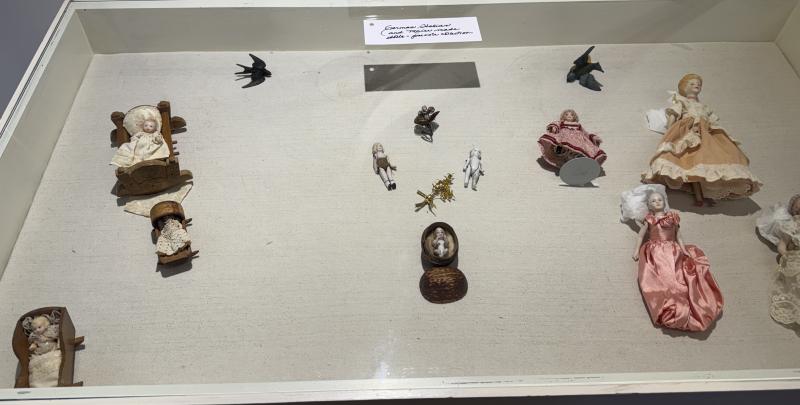 Miniature china dolls, including the “Frozen Charolette”. (Photo by Ed O’Brien)
