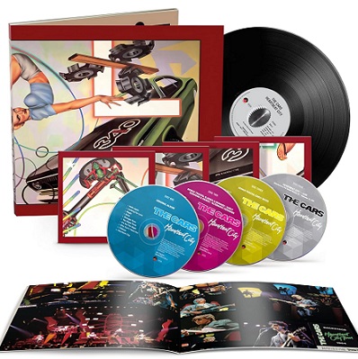 The set comes with a 16-page, 12-inch-square booklet, with track annotations by Hawkes, lyrics (including Ocasek’s handwritten ones for “I Refuse”), great vintage photos, Robinson writing about the cover (it includes an image of a 1971 Plymouth Duster 340 and an Alberto Vargas pin-up model, and is from a 1972 piece by Peter Phillips called “Art-O-Matic Loop di Loop”), Ocasek writing about the album, a discography and the box set credits. Grade: original album A+; live disc A; overall set A