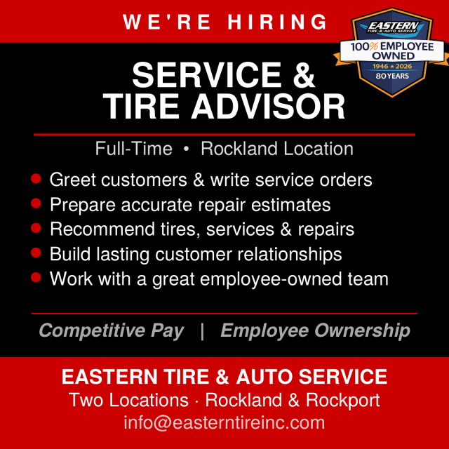 Auto Service & Tire Specialist Category Help Wanted Ready to take ownership of your career? At Eastern Tire, you're not just an employee — you're an employee-owner from day one. As a 100% employee-owned company, we believe that when everyone has a stake in our success, we all thrive.
